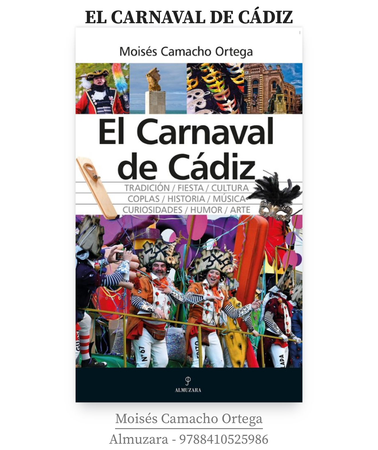 EL CARNAVAL DE CADIZ. LIBRO de Moises Camacho
